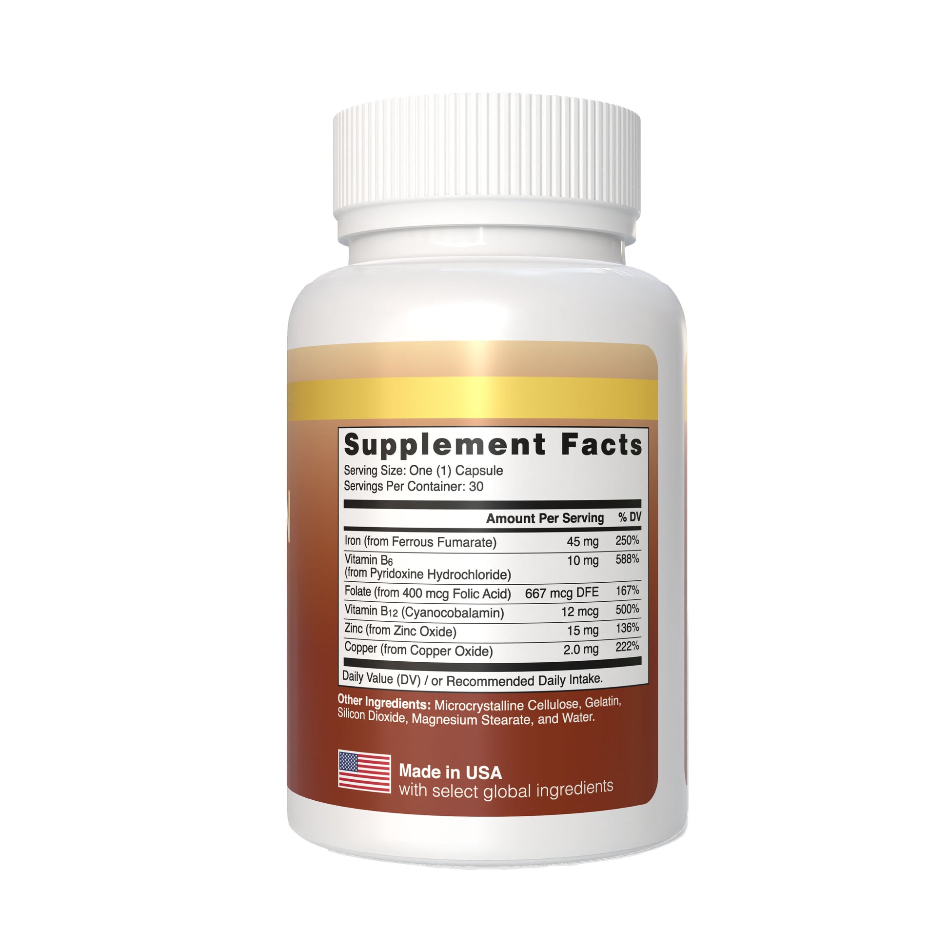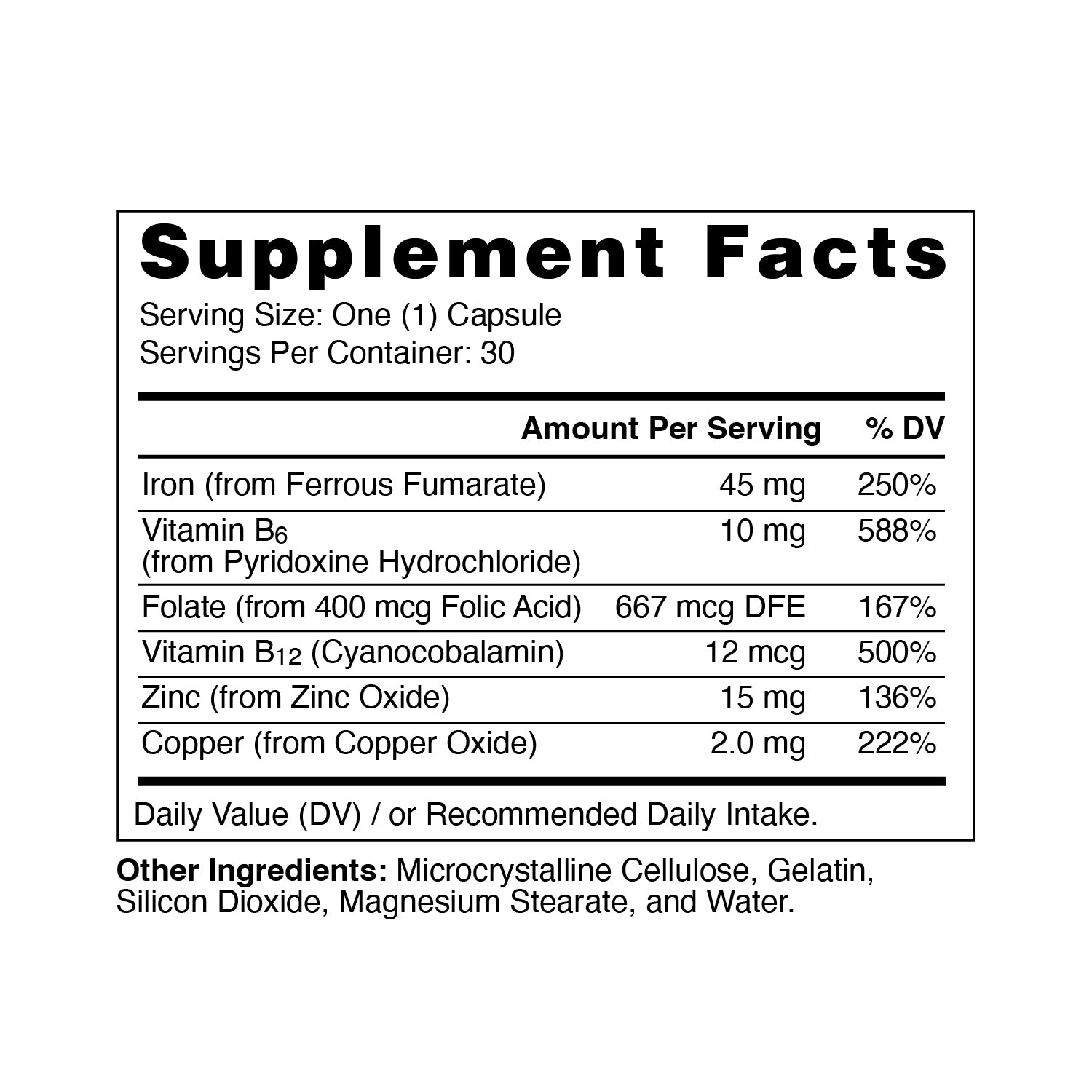 HEMOGEN contains vital and essential blood forming minerals, and nutrients including organic Iron, Folic Acid, Copper, Zinc, Vitamin B12 and B6. This proprietary formula is designed to help prevent iron deficiency anaemia.