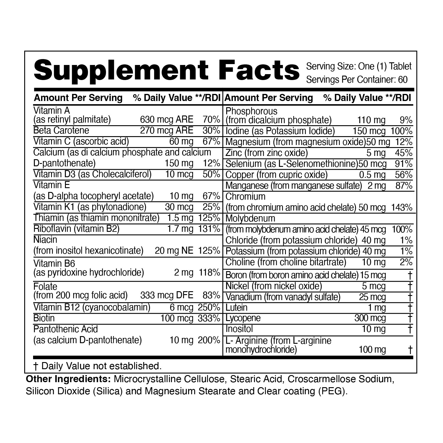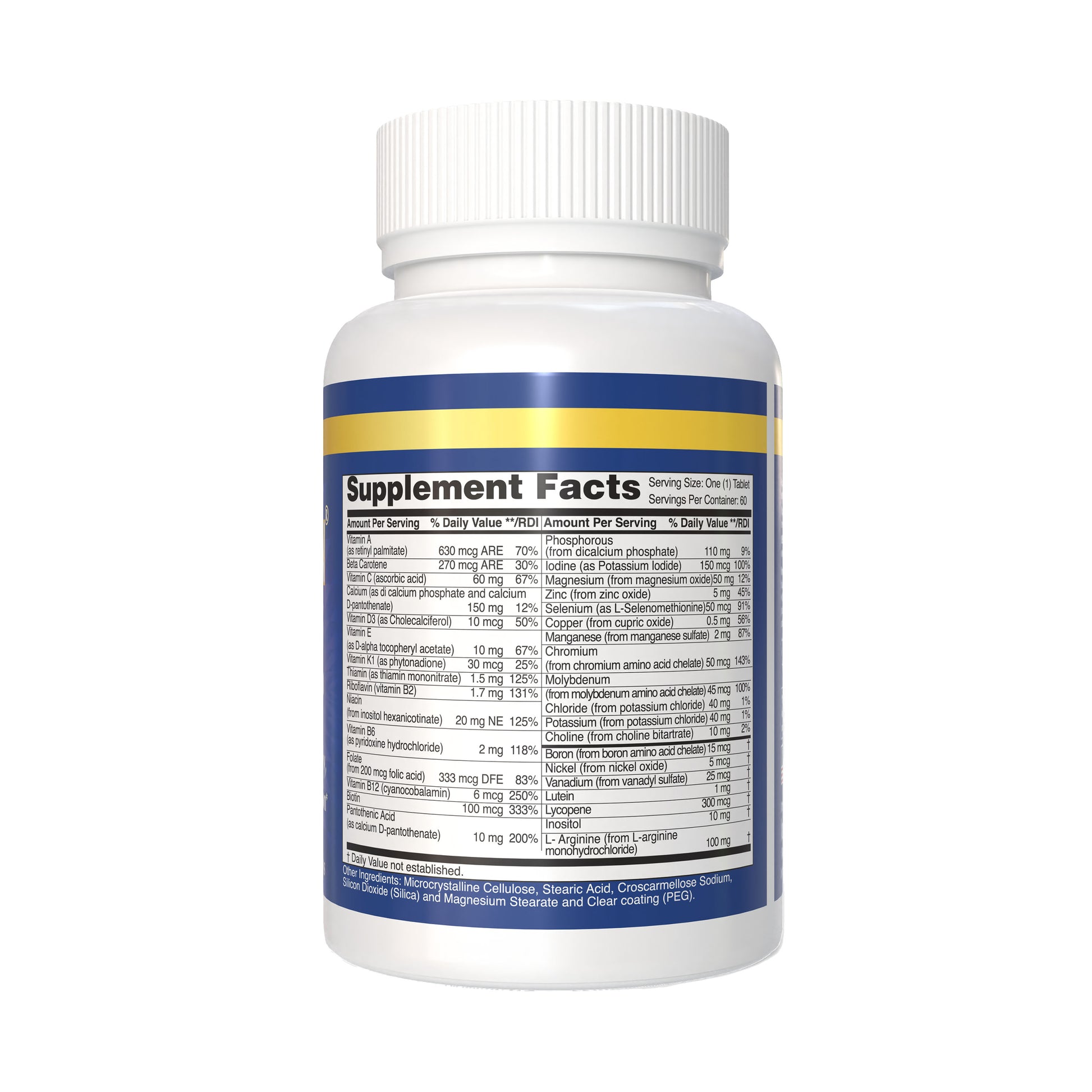 A multivitamin for men 50 plus containing all essential vitamins and minerals that help to support healthy heart, vitality, metabolism & memory function.