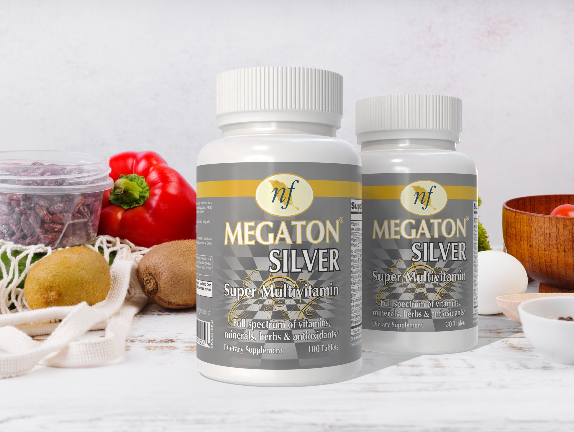 MEGATON SILVER provides select vitamins and minerals in a balanced combination with nutrition rich base, Providing Luten, Panax Ginseng, Maca and Lycopene for additional Nutritional Benefits. It contains natural substances that your body needs to grow, develop, and function normally.