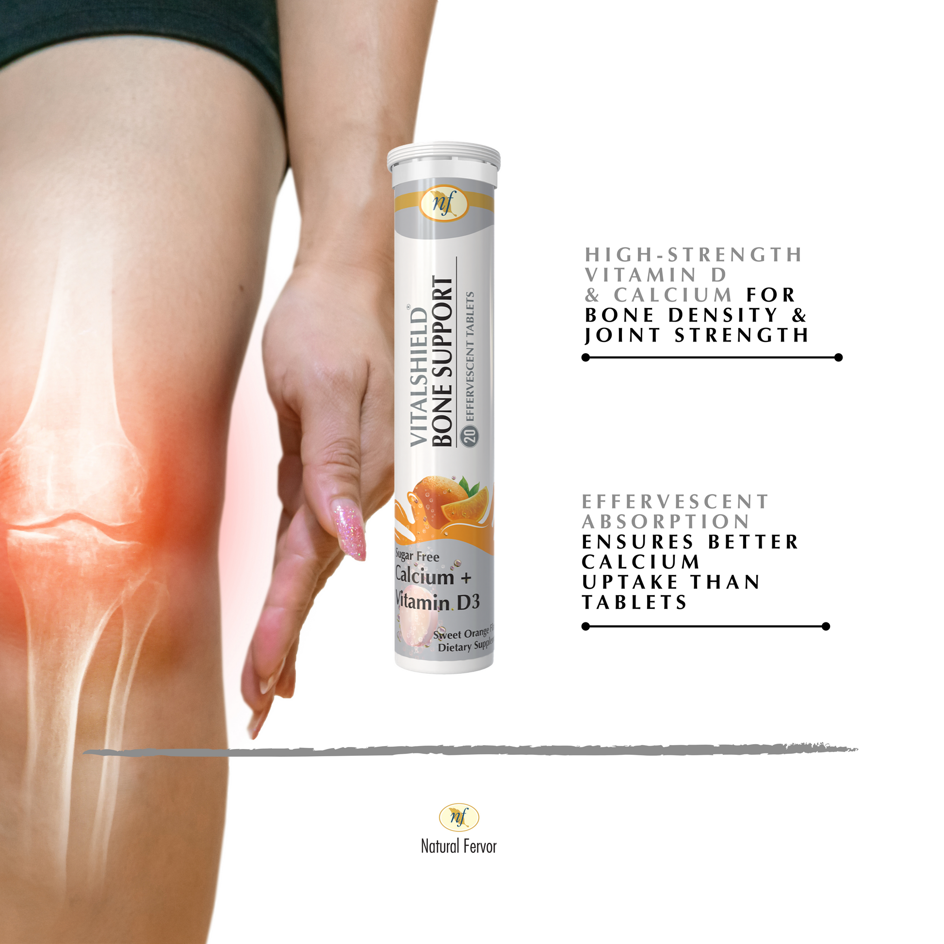 Vitalshield Bone Support is designed to support bone density and promote joint health with Calcium and Vitamin D, both of which are essential for maintaining strong bones and healthy joints.